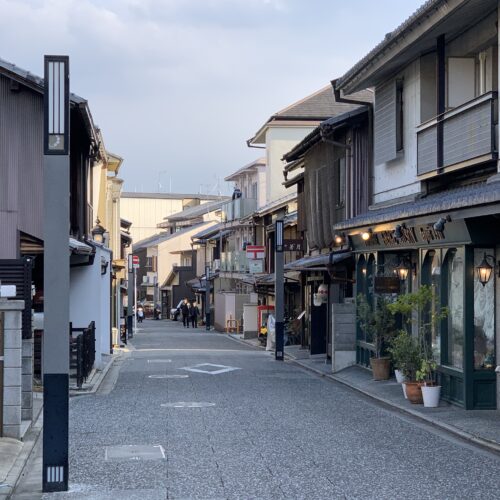 北野天満宮そばの上七軒商店街ストリート。美しい街並みです。